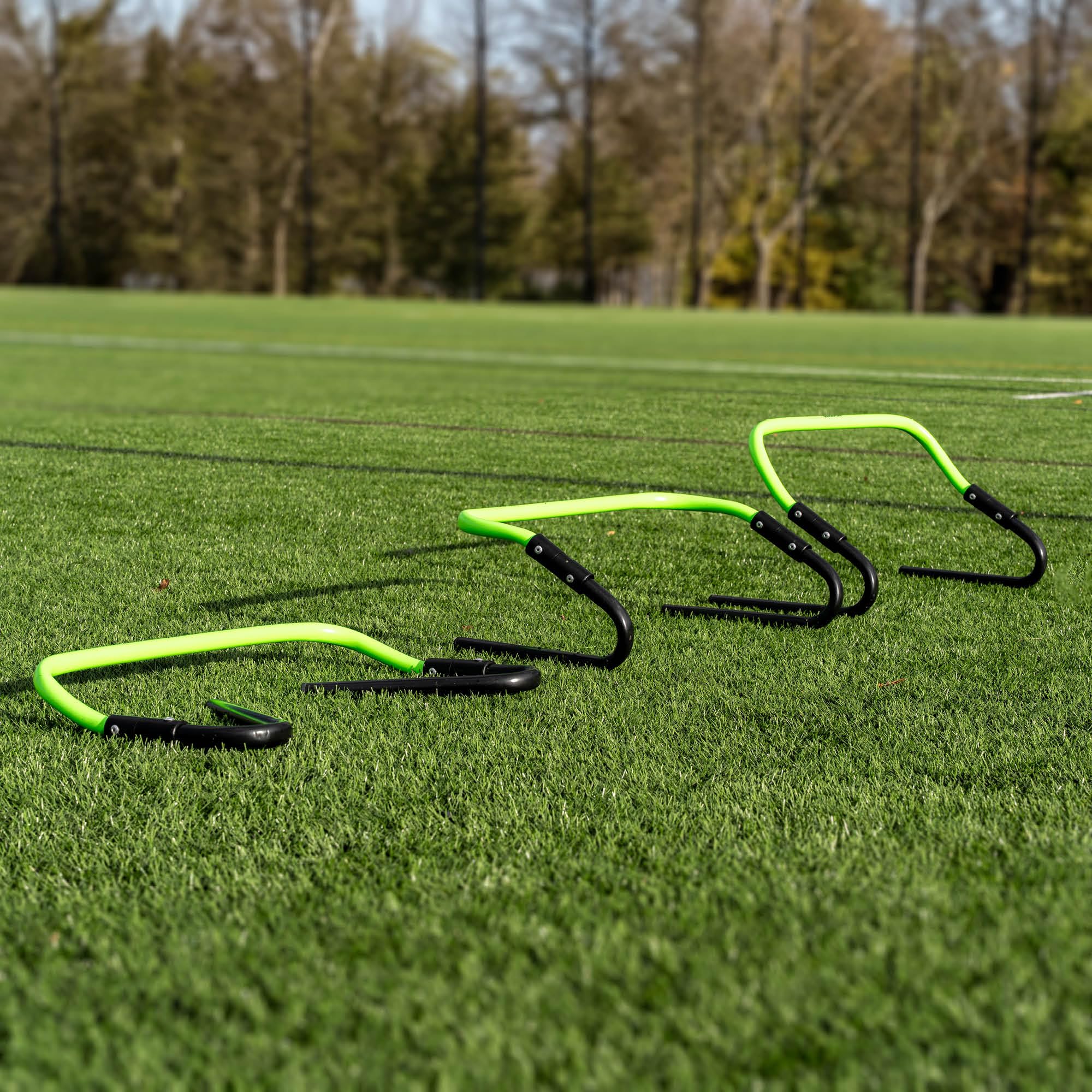 - Three Height Settings - Each hurdle adjusts to 6in, 9in and 12in, allowing coaches to scale intensity for beginners through advanced players during soccer and multi-sport training.
